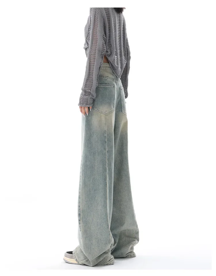 Ken Studio Spring Summer New Vintage Jeans Women's Loose Fit Design Slimming Trailer Bell Bottoms Pants American Style