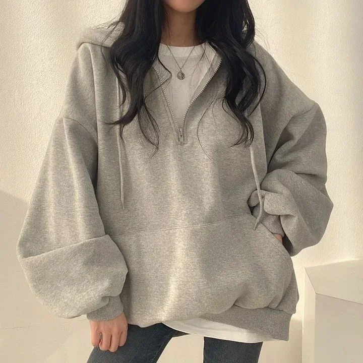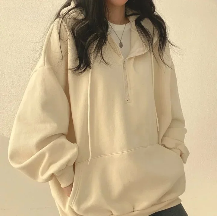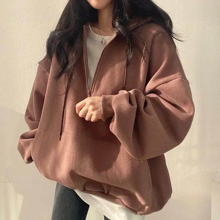 The women's solid color fleece hooded sweatshirt features a pure color design, making it a versatile addition to any wardrobe.